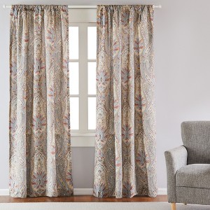 The Kasey drape panel is the perfect accessory for any room in your house. Sized at 55x84in., this drape features an Intricate, sophisticated, and fun paisley pattern in browns, teals and reds. Made from 100% cotton, the Kasey decorative curtains are easy to care for. These come with with a rod pocket ready for installation.