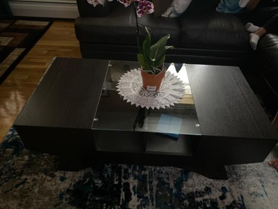 HOMES: Inside + Out Kasha Multi-storage Coffee Table Walnut: Modern Cocktail Table with Tempered Glass Top
