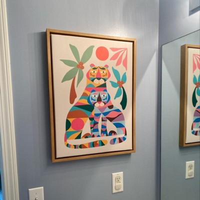 Kate & Laurel All Things Decor 18"x24" Sylvie MCM Tiger Love Framed Wall Art by Rachel Lee Natural Colorful Mid-Century Animal Wall Art