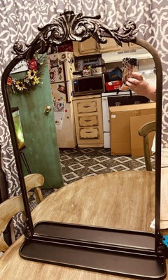 [This review was collected as part of a promotion.] This mirror is absolutely stunning! We are remodeling our guest bathroom and I picked this to go above the sink. This mirror has a beautiful antique look and the details are impressive. I love the little shelf at the bottom, it will be perfect for a little vase or plant. The mirror is pretty heavy and seems to be really well made. I cannot wait to complete my remodel and get this mirror hung up.