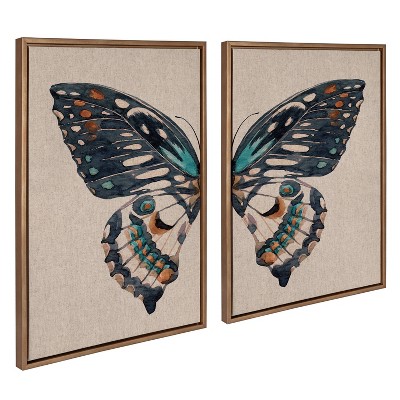 This elegant two-piece butterfly art set features a neutral tan background with a linen-like texture, creating a refined and timeless look. The design has a watercolor effect, with the butterfly split between the two pieces, one showcasing part of the delicate wings and the other completing the beautiful composition. In soft black, brown, and subtle pops of blue, this minimal yet stunning piece captures a boho vibe, bringing a serene, natural touch to any space.Framed in the USA in Waunakee, Wisconsin, this modern floating canvas art set of 2 is sure to bring joy to your space. Our design team curates art that will fit perfectly in any room of your home. Showcase this art in your living room, bedroom, home office, kitchen, bathroom, nursery, or anywhere you want to bring a little beauty and charm to your walls. Specializing in home décor, we are continually bringing timeless works of art for the traditional decorator as well as trend-forward pieces for that eclectic art lover. Our high-quality framed canvas art also makes excellent gifts for birthdays, holidays, or housewarming parties. Printed on gallery-wrapped canvas and framed with a simple gallery frame this wall art is easy to display on the wall and will match with any décor style. The outer dimension of each individual piece is 33 inches by 23 inches by 1.6 inches. Print Names: “Boho Butterfly Watercolor Diptych Neutral Linen”
