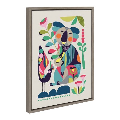 This artwork features a whimsical and colorful abstract depiction of fish swimming against a background of waves and a large sun. The fish and the waves are portrayed with fluid, curving lines in vibrant hues, creating a playful and modern aesthetic. The composition is dynamic, capturing a sense of movement and vitality. This Kate and Laurel canvas art print was created by Rachel Lee and printed by Kate and Laurel in Waunakee WI. This modern floating canvas art is sure to bring joy to your space. Our design team curates art that will fit perfectly in any room of your home. Showcase this art in your living room, bedroom, home office, kitchen, bathroom, nursery, or anywhere you want to bring a little beauty and charm to your walls. Specializing in home decor, we are continually bringing timeless works of art for the traditional decorator as well as trend-forward pieces for that eclectic art lover. Our high-quality framed canvas art also makes excellent gifts for birthdays, holidays, or housewarming parties. Printed on gallery-wrapped canvas and framed with a simple gallery frame this wall art is easy to display on the wall and will match with any decor style. The outside display dimensions are 23 in. w x 33 in. h by 1.6 in. Print Name: "Retro Coastal Mom and Baby Whales"