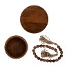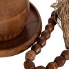 Revolutionize your tabletop decorative approach with the Kate and Laurel Anaya three-piece decor set. Meticulously crafted to blend functionality with contemporary aesthetics, this set is a must-have addition to any coffee table or entryway console table. This three-piece set includes a beaded garland, a round planter pot, and a small tray that is perfect as a candle tray or as an entryway catchall for special items. Designed with elegance in mind, each piece showcases harmonious tones of walnut brown wood, exuding sophistication and timeless style. Its versatile design ensures seamless integration into various environments, be it adorning your office desk or enhancing your bookshelf filler. Use it as a cohesive three-piece set or spread it out throughout your home to the spaces that need it most. The planter pot is 5 inches in diameter with a height of 5 inches, the accent tray is 8 inches in diameter by 1 inch high, and the beaded rope is 36 inches in length for a unique option that can snake around your coffee table decor scheme. Upgrade your decor game with this exquisite set, and experience the perfect amalgamation of modern aesthetics and practical utility. This set does not include a candle.