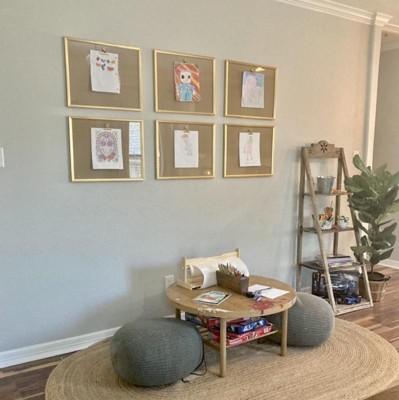 Love these! I bought 6 to display my kids art, and have 3 more on the way to add a bottom row. I just took out the mat, kept the cardboard in and glued on some gold clips I found online. Perfect!