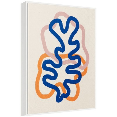 The artwork showcases a dynamic composition of flowing, abstract shapes in warm orange and cool blue tones. These shapes meander on a textured beige background, creating a sense of movement and harmony. The use of bold colors and simple lines gives the piece a modern and playful feel. This Kate and Laurel canvas art print was created by July Art Prints and printed by Kate and Laurel in Waunakee WI. This modern floating canvas art is sure to bring joy to your space. Our design team curates art that will fit perfectly in any room of your home. Showcase this art in your living room, bedroom, home office, kitchen, bathroom, nursery, or anywhere you want to bring a little beauty and charm to your walls. Specializing in home decor, we are continually bringing timeless works of art for the traditional decorator as well as trend-forward pieces for that eclectic art lover. Our high-quality framed canvas art also makes excellent gifts for birthdays, holidays, or housewarming parties. Printed on gallery-wrapped canvas and framed with a simple gallery frame this wall art is easy to display on the wall and will match with any decor style. The outside display dimensions are 18 in x 24 in by 1.6 in Print Name: "Abstract Line Art Print 1"
