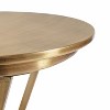 Introducing the Kate and Laurel Aja round side table, a delightful blend of charm and modern elegance. Crafted with meticulous attention to detail, its antique brass finish adds a touch of sophistication and timeless appeal. The circular tabletop showcases a stunning geometric pattern, creating a captivating focal point that effortlessly enhances your decor. Whether you place it next to your favorite armchair, sofa, or bed, the Aja side table exudes a sense of refined style and functionality. The unique slanted legs add an intriguing visual element to this already distinctive piece. Made from sturdy metal, they provide excellent stability and durability, ensuring the table remains steady and secure. With its versatile design, this decorative end table complements a wide range of interior styles, from vintage and retro to contemporary and eclectic. This exquisite side table features a compact size with dimensions of 15 inches in diameter and a 23-inch height, making it the perfect accent piece for any room in your home. Use it to display your favorite decorative items, such as potted plants, photo frames, or art pieces, and instantly elevate the aesthetic appeal of any space. Its timeless design allows it to seamlessly transition between different rooms and spaces as your decor evolves over time.