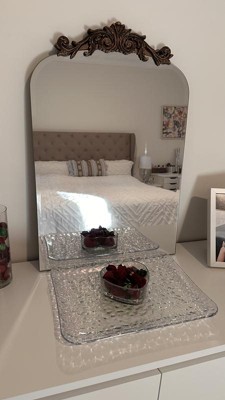 The Arendahl black frameless arched mirror brings a brilliant and decadent accent to any traditional home design. This wall mirror features a baroque-inspired design, with a resin garland crown and a unique frameless, beveled design. The antique black crown and finish allows for a versatile fit for various uses. Display this stylish piece in your living room, entryways, hallways, bedrooms, bathroom vanities, or dining room for an elegant, yet nuanced focal point. Measuring 20 inches wide by 30 inches tall, the Arendahl's large surface area can immediately open and enlarge an area. Easily hang your new mirror with our D-ring hanging method. Not only is it easy to hang, the Arendahl frameless mirror hangs discreetly and securely.
