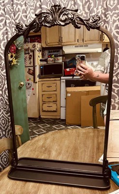 [This review was collected as part of a promotion.] Very beautiful mirror, I just had to share it. I absolutely love it. It also has a little shelf for small stuff that hooks on the bottom. Now I need to figure out where to put it up. Love how it looks like an older style. Very pretty. This is the black mirror. The other colors are just as beautiful.