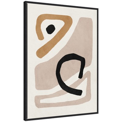 The artwork features a minimalist composition with bold black shapes against a white background. It consists of abstract and geometric forms, including a semicircle, a curved line, and an oval. The simplicity and contrast create a modern and striking visual impression. This Kate and Laurel canvas art print was created by July Art Prints and printed by Kate and Laurel in Waunakee WI. This modern floating canvas art is sure to bring joy to your space. Our design team curates art that will fit perfectly in any room of your home. Showcase this art in your living room, bedroom, home office, kitchen, bathroom, nursery, or anywhere you want to bring a little beauty and charm to your walls. Specializing in home decor, we are continually bringing timeless works of art for the traditional decorator as well as trend-forward pieces for that eclectic art lover. Our high-quality framed canvas art also makes excellent gifts for birthdays, holidays, or housewarming parties. Printed on gallery-wrapped canvas and framed with a simple gallery frame this wall art is easy to display on the wall and will match with any decor style. The outside display dimensions are 18 in x 24 in by 1.6 in Print Name: "Black Geometric Abstract 3"