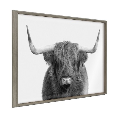 Product Name: Kate and Laurel Blake Highland Cow Portrait Framed Printed Art by Amy Peterson Art Studio, 18x24, Gray