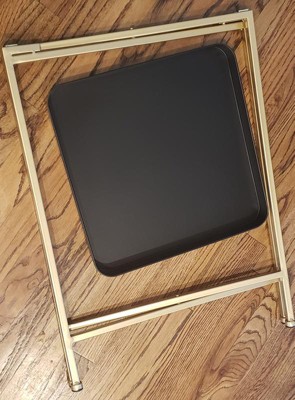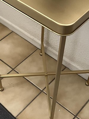 [This review was collected as part of a promotion.] kateandlaurel - Celia Metal Tray Accent Table is really great! This table was super easy to set up just pop the legs up then set the tray like top onto the legs it has magnets to keep it all in place, very handy. This table is really pretty and shiny, it is also very sturdy. Easy to clean up and works in many parts of my home. Easy to move around and store away when not in use. Since the trey like top can come off it can also be used as a trey for food. So many uses for this table. I would highly recommend!