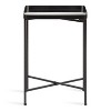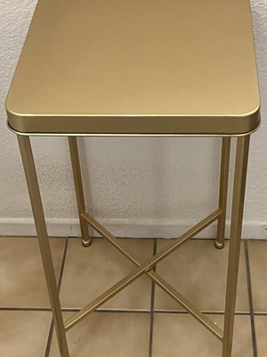 The Celia tea table's beautiful and modern design makes for a fabulous addition to your home decor! Inspired by functional yet minimalist aesthetics, the Celia tea table features clean lines and a chic, square tabletop, creating a conversation starter that will spark the energy at any get-together. It's made from a 100% metal construction, making it resilient enough for multiple years of display. The square tabletop is magnetic, securing onto the cross legs in a snap. The clean cross-leg frame is also foldable, making it easy to store away when you need extra room at your next gathering. This beautiful Celia table's overall dimensions are 14 inches wide by 14 inches deep by 26 inches tall, making it a fabulous compliment to your bed, couch, vanity, or entryway. Use it to showcase a gorgeous succulent or store books, keys, and other household necessities. The bottom of each of the legs has footpads attached to prevent scuffing, scratches, or other damage to your hard surfaces.