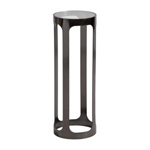 Add a charming accent to your home with this Dahl slatted drink table. Between its modern metal risers and round tabletop, the table serves as the most delightful display accent. Along with its clear glass tabletop, these risers create negative space that enables your space to feel more open and light. Crafted in India from sturdy iron, this table is built to be durable and stand up to everyday use, indoors or outdoors. The Dahl is the optimal accent table for your living room, bedroom, patio, home office, or screened in porch. At 23 inches tall, it is the perfect height for easy access to your drink as you relax on a comfy sofa or chair. The platform width of 8 inches is the perfect size to hold a drink or a smaller plant. Commonly used as a living room drink table, this table also serves as a modern plant stand. With its unique design, this metal drink table comes fully assembled, so you can start enjoying and decorating it at once. The table's unique negative space gives you arched openings between each of the four risers.