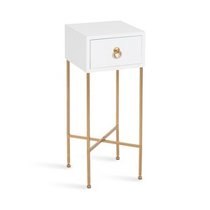 - Useful Storage Cubby: The robust wooden tabletop includes a functional drawer, and the metal base features a painted gold finish