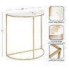 Introducing our Dorrah half-circle console table, the perfect addition to any home's entryway! Crafted with high-quality materials, this entryway table boasts a sturdy and durable design that is built to last. The painted gold metal base and the wooden white tabletop make for a classic color pairing. The half-circle shape is perfect for small or narrow entryways, providing ample space for displaying decor or storing everyday essentials. The compact size of the table also makes it a great choice for apartments or small living spaces. Featuring a spacious tabletop, this entryway console table provides plenty of room for displaying decorative items such as vases, picture frames, or candles. Measuring at 28 inches wide, 14 inches deep, and 30 inches tall, this console table is both functional and stylish. Assembly of this console table is quick and easy with just just a few simple steps. The sturdy construction ensures that the table will remain stable and secure, even with daily use.
