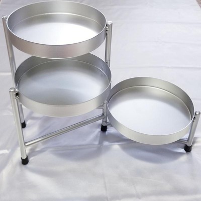 This edition of our Finn tri-level plant stand offers a compact design for multiple ways to display. The Finn plant stand has a 100% all-metal construction, designed with three tiers for various display surfaces. These three tiers collapse into one another to save space in your home and create a compact accent piece. This plant stand also has smaller dimensions, too; each of the three round tiers has a 7.25-inch diameter, while the overall height is standing at 10 inches tall. This size is perfect for showcasing the Finn on a side, coffee, or dining table. Use the three tiers to create a dazzling botanical-themed centerpiece or to display decor in your entryway, dining room, living room, bedroom, or kitchen. This accent piece isn't only for plants, either! Use the Finn as a storage catch-all for makeup, jewelry, and other household items. It also functions as an excellent dessert or serving tray, making it a fantastic addition to your next gathering or afternoon tea.