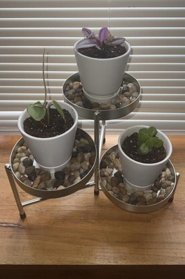 [This review was collected as part of a promotion.] This little three tiered plant Holder is super cute and just the right size for a table. I have the silver one and it looks great on my dining room table with whatever table cloth and decor I layer around it. I need a couple more to add around the house!!