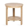 Showcase your transitional-inspired style with the Foxford side table from Kate and Laurel. The light and elegant finish of the wood adds a touch of sophistication to any space, while the simple and clean lines of the design make it easy to blend seamlessly with any decor style. The light natural wood finish also lends itself to organic modern or coastal design, giving it that look of transitional, timeless decor. A careful blend of solid wood and resilient wooden material was used to create this beautiful side table, creating a statement that is as durable as it is beautiful. Its overall dimensions are 22 inches wide by 22 inches deep by 24.25 inches tall, allowing the Foxford to function well in small corners, next to a bed, near an entryway, or paired with living room furniture. The top wooden tier is perfect for creating a lovely display area for candles, small lamps, and other accents. The bottom tier of the Foxford is great for storing your favorite household accessories, from small blankets to lush faux greenery. Assemble this table in only a matter of minutes with a straightforward, two-step assembly process.