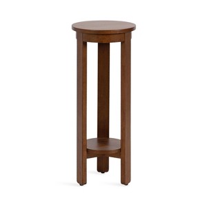 Showcase your transitional-inspired style with the Foxford drink table from Kate and Laurel. The warm and elegant finish of the wood adds a touch of sophistication to any space, while the simple and clean lines of the design make it easy to blend seamlessly with any decor style. The walnut brown wood finish also lends itself to organic modern design, giving it that look of transitional, timeless decor. A careful blend of solid wood and resilient wooden material was used to create this beautiful drink table, creating a statement that is as durable as it is beautiful. Its overall dimensions are 12 inches wide by 12 inches deep by 30 inches tall, allowing the Foxford to function well in small corners, next to a bed, near an entryway, or paired with living room furniture. The top wooden tier is perfect for creating a decorative display area for candles, small lamps, and other accents. The bottom tier of the Foxford is great for storing your favorite household accessories. Assemble this table in only a matter of minutes with a straightforward, two-step assembly process.