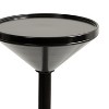 The Frisk drink table brings glamour and sophistication to your home with its premium design. This table features a sturdy metal frame with a modern black finish on the frame, providing a strong base to hold a martini or plant. The Frisk table's martini glass shape provides a modern and unmatched look that offers unique sophistication. This drink table has a slim, compact design, with dimensions standing 8 inches wide by 8 inches deep by 23 inches tall, making it a wonderful addition to one of the smaller spaces in your home. It's also fantastic for adding a striking visual to one of the bare corners of your home! This table is ready to showcase a gorgeous candle, a small succulent, or, of course, your favorite cocktail or mixed beverage. This version of the Frisk table is also able to be used outdoors as an accent table for your patio, deck, balcony, or porch. Its compact size is also perfect for showcasing your favorite houseplant as the star of your living room or bedroom decor. Each Frisk table features rubber pads attached to its base to prevent your hardwood or tile floors from scuffs or other damages.