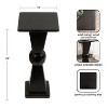 Introducing our beautifully crafted Gaeta wooden drink table, the perfect addition to any living room, home office, or sunroom. Made from solid mango wood, this square table offers a unique sculptural leg and a sturdy, reliable surface to hold your drinks, plants, or any items you may need within reach. Measuring 22 inches in height and 10 inches wide, this square table is the perfect size to fit next to your favorite armchair or couch. The modern black finish of the wood provides an elegant and timeless look that complements any decor style. Not only is this wooden side table functional and stylish, but it's also durable and long-lasting. The mango wood tabletop ensures that it can withstand regular use and will feature unique woodgrains. Plus, its compact size makes it easy to move around and store when not in use. This versatile table is perfect for enjoying a relaxing evening at home or hosting a gathering with friends and family. The table comes fully assembled, so you can begin enjoying it right out of the packaging.