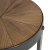 - Farmhouse Inspired The Gerhardt side table features a modern take on farmhouse decor, with a distressed pieced-wood tabletop that has a one-of-a-kind starburst pattern within the wood, encased in a sleek, minimal black frame