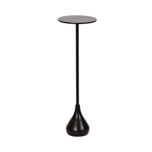 The charming Hersi drink table makes a bold impression with its useful contemporary style. The mini table has a sophisticated design that draws the eye and captures guests' attention, featuring a trendy round tabletop and a teardrop-shaped bottom. This craftsmanship creates a distinct look, allowing your cocktail table to stand out without overcrowding your living space. The table is made from cast aluminum featuring a satin black finish to provide a versatile living room table option. This small drink table's overall dimensions are 6.5 inches wide by 6.5 inches deep by 20 inches tall, making it a fantastic addition next to a couch, armchair, or bathtub. The Hersi looks great, whether it's holding a drink on a coaster, acting as a catch-all for small household items, or displaying your decorative style. The small size of this table makes it fantastic for small spaces or corners of the home. Assemble the beautiful Hersi pedestal table in a matter of minutes with a simple two-step assembly process.