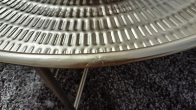 The Mahdavi coffee table features a sophisticated, organic look that draws the eye and fascinates guests with its tactile texture. Inspired by Modern Design, the Mahdavi introduces an intelligent, Foldable Design, providing an excellent assembly and storage method at a moment's notice. This Foldable Design features a screw-in frame on four sides so that the tabletop sits securely. This decadent piece of modern decor features a black finish and an embossed, organic pattern on the tabletop, inspired by Moroccan furnishings' dedicated craftsmanship. The raised edge on the tabletop also secures your items on the Mahdavi without the fear of them falling off the edge. The table was made from 100% metal, creating an accent piece that is as resilient as it is beautiful.