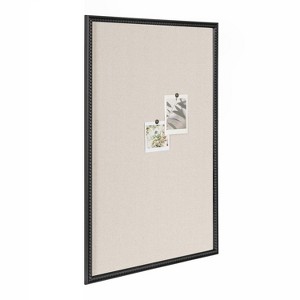 Introducing the Kate and Laurel Makenna fabric pinboard, the perfect combination of function and style for your home or office. The pinboard is made with a high-quality linen fabric that is durable and perfect for holding notes, photos, and other important documents. The beaded frame and traditional black finish add a touch of elegance and sophistication, making this pinboard perfect for vintage-inspired or traditional home decor. Use it to organize your to-do lists, keep important papers in one place, or create an aspirational vision board to help you achieve your goals. With the attached metal D-ring hangers, the Makenna bulletin board is easy to install vertically or horizontally on any wall in your home or office. The pinboard measures 24 inches wide by 36 inches high and features a classic black frame that complements any decor. Whether you're looking to organize your space or add a stylish touch to your decor, this pinboard is the perfect choice. Invest in this stylish pinboard today and take the first step towards a more organized and inspired life.