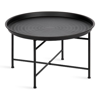Bring an alluring element of minimalism to your living room or bedroom with the lovely Nira coffee table. This coffee table features an all-metal construction with a round, two-tier design, making it a functional and modern accent to unite your contemporary aesthetic in any room. The Nira features a hand-applied black epoxy enamel finish on the top tier's surface, giving it a beautiful and glossy look to shimmer in your living room's light. The two-tier design allows this table to be fantastically Multifunctional; use the lower tier to store things like media remotes, books, and other small household items. The upper tier is the perfect way to showcase pieces like rich succulents, family photos, or other decorative accents. The overall dimensions of the Nira coffee table are 26.5 inches wide by 25.5 inches deep by 20 inches tall, so the styling options are only limited to your wildest imagination. The Nira table is a fantastic way to create a centralized meeting area for your home, giving you the space to host a book club or movie night. The rubber pads attached to each of the Nira's legs allow you to place it in any room, preventing scuffing and damage to your hard surfaces.