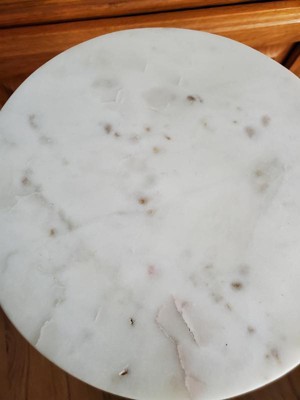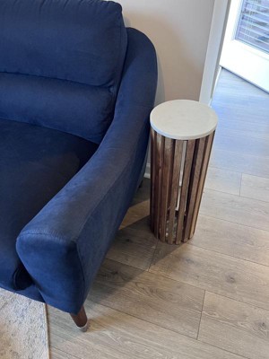 [This review was collected as part of a promotion.] This table is high quality and beautifully designed. Solid wood and marble make this a chic addition to any home. It’s the perfect size to fit anywhere and relocate to fit your needs. This is a multi-purpose table as mine is currently being used as a plant stand!