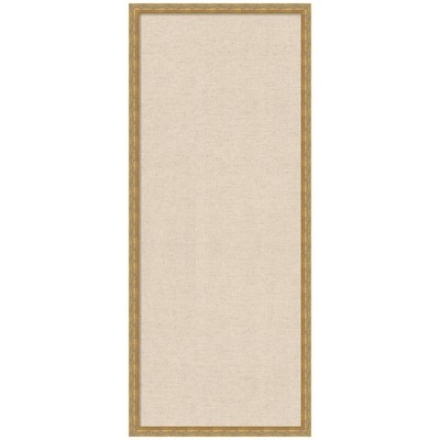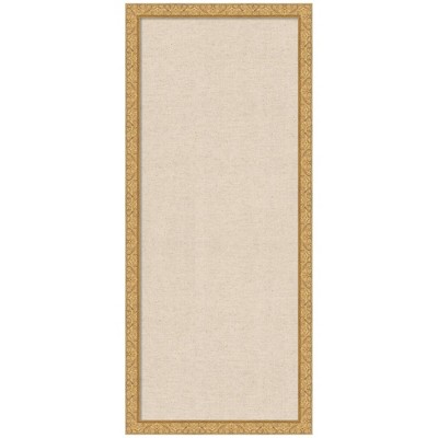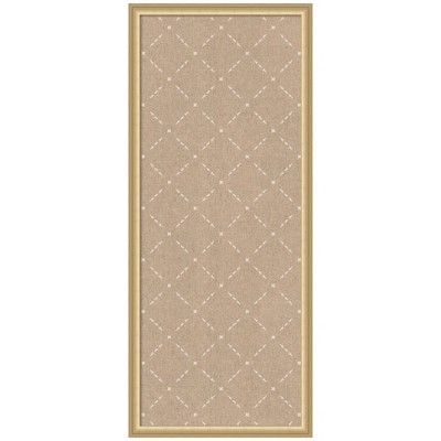Organize your home in style with a fabric pinboard that has a sophisticated, classic appeal. The neutral linen textile pattern accented with a green lattice print is inspired by the belief that organization doesn't have to be boring. The decorative pinboard has a lightweight construction with a high-quality, fabric pinning surface that allows pin to push fully in to showcase all your meaningful keepsakes. Use this functional, designer pinboard for hanging photos, wedding invitations, holiday cards, or even stellar report cards. As an stylish accent, the beautiful gold framed bulletin board looks excellent in any classic-inspired entryway, living room, bedroom, mudroom, or kitchen. It looks fantastic as a critical focal point in a family command center to post reminders, daily chores, or dinner schedules, too. Kick start your creativity in a craft room or creative space by using this accent as a memory or vision board. The overall dimensions of this decorative pinboard are 42 inches wide by 18 inches high with a pinning surface measuring 40 inches wide by 16 inches high. The Florence Gold Pinboard also hangs in a matter of seconds with convenient metal D-ring hangers attached to the back of the frame.