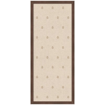 Organize your home in style with a fabric pinboard that has a sophisticated, rustic farmhouse appeal. The neutral linen textile pattern is inspired by the belief that organization doesn't have to be boring. The decorative pinboard has a lightweight construction with a high-quality, fabric pinning surface that allows pin to push fully in to showcase all your meaningful keepsakes. Use this functional, designer pinboard for hanging photos, wedding invitations, holiday cards, or even stellar report cards. As an stylish accent, the beautiful brown framed bulletin board looks excellent in any rustic farmhouse-inspired entryway, living room, bedroom, mudroom, or kitchen. It looks fantastic as a critical focal point in a family command center to post reminders, daily chores, or dinner schedules, too. Kick start your creativity in a craft room or creative space by using this accent as a memory or vision board. The overall dimensions of this decorative pinboard are 22 inches wide by 28 inches high with a pinning surface measuring 18 inches wide by 24 inches high. The Owl Brown Narrow Pinboard also hangs in a matter of seconds with convenient metal D-ring hangers attached to the back of the frame.