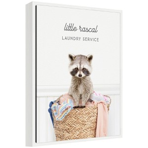 Product Name: Kate and Laurel Raccoon Little Rascal Laundry Service Framed Canvas by Amy Peterson, 18x24, White