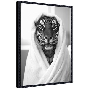 Product Name: Kate and Laurel Tiger Bathroom Art Towel Robe Black and White Framed Canvas by The Creative Bunch Studio, 18x24, Beaded Black