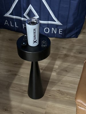 - Versatile Circle Table: This contemporary drink table features a satin black finish with a visible woodgrain which works well with a variety of decor styles as a plant stand, indoor living room accents, or a small bedroom nightstand