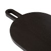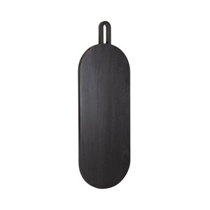Introducing the Kate and Laurel Staven capsule serving board, a must-have addition to your kitchen or dining area. Crafted with meticulous attention to detail, this large cheese board is designed to elevate your culinary presentation and provide a stylish way to serve and display your favorite appetizers, charcuterie, cheeses, and more. The modern black finish of the board exudes a modern and sophisticated aesthetic that seamlessly complements any decor style, from contemporary to rustic. Constructed with solid mango wood, this charcuterie board is not only visually appealing but also highly durable and long-lasting. The Staven serving board boasts a thoughtful design with its convenient handle, allowing for easy carrying and serving. Whether you're hosting a casual gathering or an elegant dinner party, this board makes it effortless to present your culinary creations in a visually stunning manner. This sizable charcuterie board measures 30 inches wide by 10.5 inches deep, offering versatility and options for different occasions. Beyond its functional use, this serving board can also serve as an exquisite decorative piece for your kitchen or dining room. Display it on your countertop to add a touch of natural beauty and artistic flair to your space.