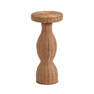 Add a charming accent to your home with this Sula rattan drink table. Between its woven base and tabletop, the table serves as the most delightful display accent. Crafted from premium materials, this table features high-quality natural rattan for a boho wicker table look. Crafted with soft curvature in mind, the base of this mini table boasts a unique sculptural design. The Sula is the optimal accent table for your living room, bedroom, or home office area. Commonly used as a living room drink table, this table also serves as a lovely boho plant stand. Perfect for a beach house or vacation home, this coastal accent table perfectly accentuates your beachy decor. At 22 inches tall, it is the perfect height for easy access to your drink as you relax on a comfy sofa or chair. The platform diameter of 9.75 inches is the perfect size to hold a drink or a smaller plant with a little extra wiggle room. With its unique design, this coastal drink table comes fully assembled, so you can start enjoying and decorating it at once. Complete your living room or bedroom decor scheme with this boho decor piece.