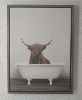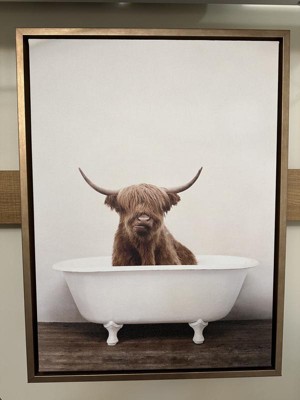 [This review was collected as part of a promotion.] I just got in the Sylvie Highland cow in the bathtub picture from kateandlaurel and it is beyond cute! The picture in on canvas with a beautiful frame. The print is large and spot on. The cow is just adorable!! Super cute!!