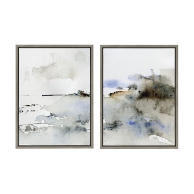 Product Name: Kate and Laurel Sylvie Ink Wash Floral Left and Right Framed Canvas by Emma Daisy, 2 Piece 23x33, Gray