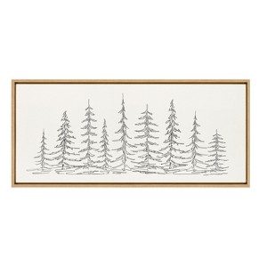 Kate and Laurel Sylvie Minimalist Evergreen Trees Sketch Framed Canvas by The Creative Bunch Studio, 18x40, Natural