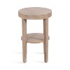 Blend your love of modern style with a dash of transitional functionality with the Talcott side table. This table embraces a simplistic, uncomplicated design in its round shape. Skilled artisans craft the Talcott by hand, and due to this careful, delicate crafting, each piece is one-of-a-kind in finish and woodgrain. It is made of 100% solid mango wood for a table that looks and feels rich and high-quality. It not only looks good; however, it also features two tiers of mango wood tabletops that can serve various purposes throughout your home. The Talcott light natural side table measures 16 inches in diameter by 24 inches tall, giving you an effortlessly versatile size to showcase all over your home. It is a perfect pairing next to a sofa, by your bed, or flanking your entryway. In addition, the two tiers are ideal for storing and displaying household necessities and your most cherished decorative accent pieces. Assembly for this minimal table takes a matter of minutes with a simple 3-step process will have your new end table ready in no time.