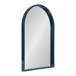 Create a bold focal point that captures the eye and brings light to your space with the Travis arched mirror from Kate and Laurel. The Travis mirror utilizes a glossy navy blue finish on its arched frame, creating a sleek, modern take on wall decor design. The soft arched shape is perfect for creating a symmetrical and inviting accent on your wall. Crafted from a sturdy wooden material, this arched mirror is built to last. The Travis mirror is 20 inches wide by 1.5 inches deep by 30 inches tall, making it a commanding focal point in your entryway, living room, bedroom, or dining room. Thanks to the ample surface area, the Travis is perfect for use as a bathroom vanity mirror, looking fantastic in a single or double vanity display. As a decorative focal point, this mirror highlights your light sources, enhancing the vibrancy and dimension in your space and making it appear more open. It's a fabulous accent mirror to hang on its own or in a display of two or three on a wide hallway wall. The Travis is easy to hang on any wall with metal triangle hangers attached to the back of the frame.