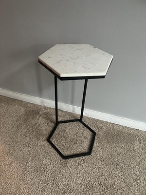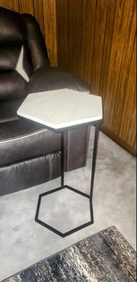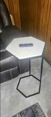 [This review was collected as part of a promotion.] The Kate and Laurel Trillion Modern C-Table is a stylish and sophisticated end table that features a premium marble tabletop and resilient iron legs constructed in a unique hexagon shape. With ample tabletop space, it is perfect for showcasing decorative items and holding media remotes, snacks, and books. While there may be some minor issues with assembly and stability, this C-table is still a fantastic addition to any modern decor.