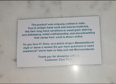 [This review was collected as part of a promotion.] I was so excited when this finally came in the mail. It's beautiful! It took me longer to get it out of the box than it did to put it together. I love how well it came together in the package. They made sure it wasn't going to break the marble. It took maybe 2-3 minutes to put it together. The marble is just beautiful! We recently just got a new couch and this goes with it perfectly as an end table. They also have it in a gold color as well. When you put it together, make sure you put the marble upside-down and build up from there because it is very heavy. It's veto sturdy and easy to move around if needed. I can't wait until my other one gets here! Kate and Laurel have some beautiful pieces to choose from.