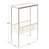Add the contemporary Trubey side table to your elegant modern home decor. This table combines modern sophistication with pure practicality, featuring a sleek, mirrored glass top and a convenient bottom storage rack. Use it to store your favorite novels, magazines, tablets, and reduce the clutter in your home. It fits perfectly between the living room couches or next to the loveseat with its smaller stature and simple design. However, it's not exclusively made for the living room; use it as a minimalist table in your bedroom or as a place to store mail in your entryway. With its clean, gold look and modern style, the Trubey side table blends seamlessly with any contemporary decor. And with its padded feet, you can move this table around the room without the risk of scuffing your beautiful floors. With its gorgeous minimalistic design and useful functionality, the Trubey side table will be the perfect place to set your morning coffee or store your favorite reading materials.