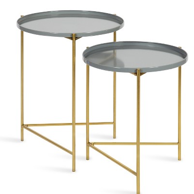 The Ulani tables create an attention-grabbing conversation starter that's perfect for storage and display. Inspired by modern aesthetics, the Ulani table collection features three tables with a nesting design, with a round tabletop and a slim, minimal frame. The round tabletops also secure to the frame with magnets, allowing them to be easily removed to act as trays! The metal frames also fold to easily store the Ulani tables for extra floor space at your next get-together. Due to their nesting design, the Ulani table set features three heights: 18 inches, 24 inches, and 30 inches. Each tabletop has a 12 inch diameter, creating a functional space to place a lamp, photos, drinks on coasters, or books. They're fantastic for flanking a couch or your bedside, or even placed in your bathroom. These tables are great whether you decide to display them together as one unit or spread throughout your home, creating a cohesive and consistent decorative style. With this versatile and multipurpose design, the Ulani nesting tables are a fabulous addition to your refined, contemporary home.