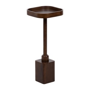 Introducing the beautifully crafted Woodrow wooden square drink table, the perfect addition to any living room, home office, or sunroom. Made from high-quality mango wood, this table offers a chunky pedestal base and a sturdy, reliable surface to hold your drinks, plants, or any items you may need within reach. Measuring at 24 inches in height and 10 inches square, this mini table is the perfect size to fit next to your favorite armchair or couch. The warm mocha brown wood finishes provide a versatile look that complements any decor style. Not only is this wooden drink table functional and stylish, but it's also durable and long-lasting. The mango wood construction ensures that it can withstand regular use and will feature unique variations within the woodgrain based on its organic wood structure. Plus, its compact size makes it easy to move around and store when not in use. This versatile table is perfect for enjoying a relaxing evening at home or hosting a gathering with friends and family. The two-step assembly is quick and easy with hardware included. The instructions are clear and concise, making it a breeze to put together in just moments.