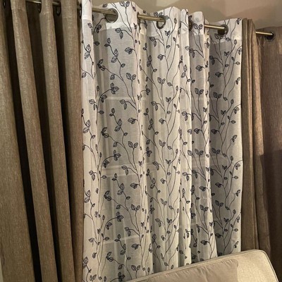 Kate Aurora 2 Pack Floral Leaf Embroidered Grommet Sheer Curtains