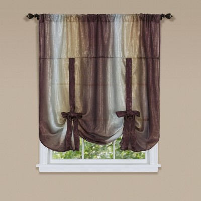 Kate Aurora 9 Piece Rod Pocket Semi Sheer Brown Window Curtains & Tasseled Valance Set - 84 in. Long